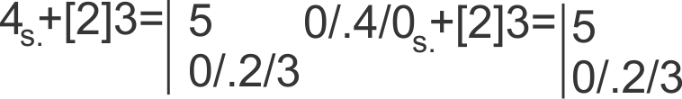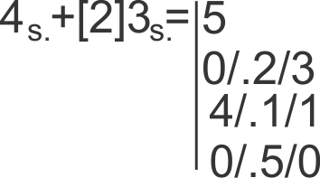 4 + [2] 3 = 5, 0/.4/0 + 2 [3] = 0/.2/3, 4 + [2] = 0/.3/0 4/.1/1,