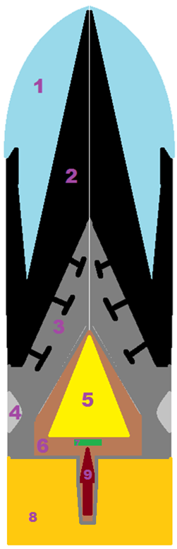 For the hook, it's not supposed to be very thin, and it's should be made with the same material as the penetrator, and attached to it. The soft lower level is supposed to act as a hinge when the penetrator is hooked, and then the heavy third level would push inward, and it's supposed to open the entire shell. And with the free-floating pin igniting the payload, and then "Injected" inside the target.
