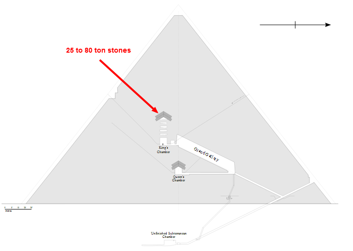 Lifting the heavier stones was not a particular ordeal simply because the counterweights could be used in tandem. I should add that the estimate of the amount of granite in G1 is probably grossly understated. It is apparent that they preferred granite for their canals and these would have been left where they lay inside the structure. The device that caught the water was dismantled and granite was likely used for the so-called king's chamber but most of it was turah limestone that was used for cladding. Once they lifted something it stayed lifted. Much of the infrastructure needed to build this was turah limestone so they could keep the quarry busy for 20 years instead of suddenly ramping production to astronomical levels. As the project wound down these structures were canibalized for stone. There were no "religious structures" and nothing was built for "religious reasons". This project was done "industrially" and very efficiently. This is what all the evidence suggests.