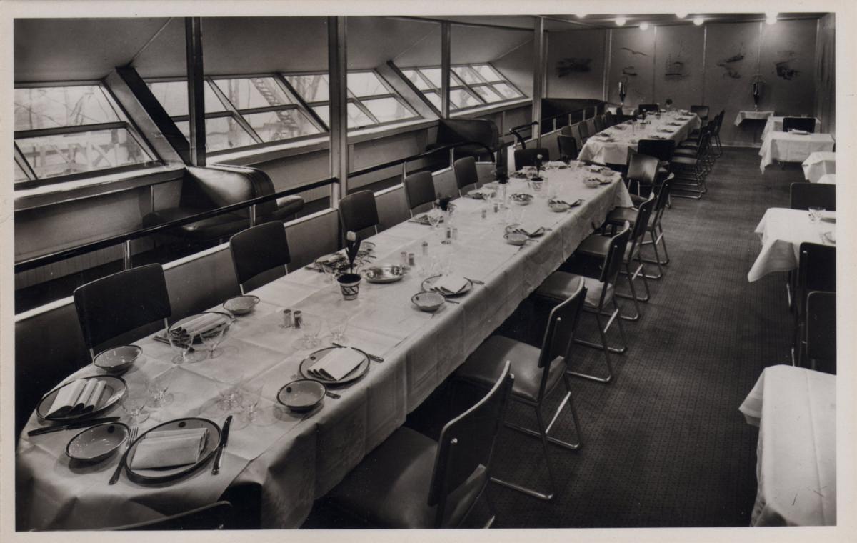 In the dining room all furniture was aluminum including tables and the silverware.