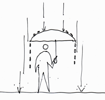 IOW in practice, the walker is obliged to keep the umbrella inclined not regarding at all the issue about the drops. The important thing is to keep your head dry.