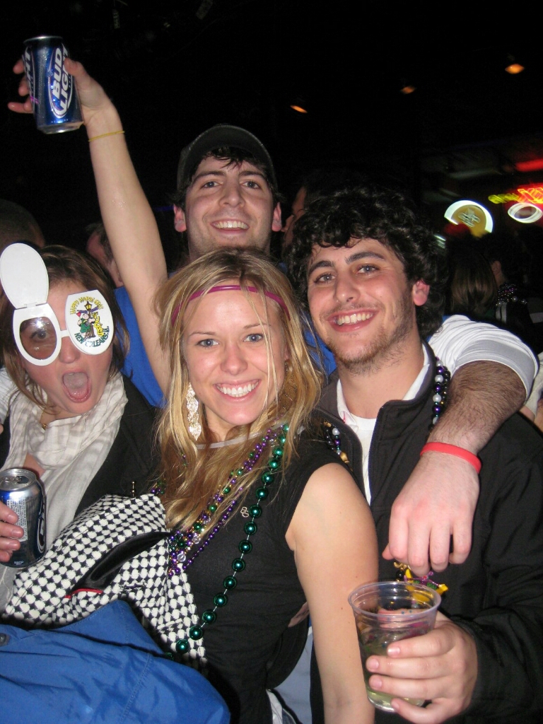 I was down on Bourbon St in New Orleans for Mardi Gras back in 2007... There's a lot of things that are missing from this picture that would complete the "party animal" persona. For example, it's missing hard liquors, torn/holey clothes, spilled drink stains, etc.