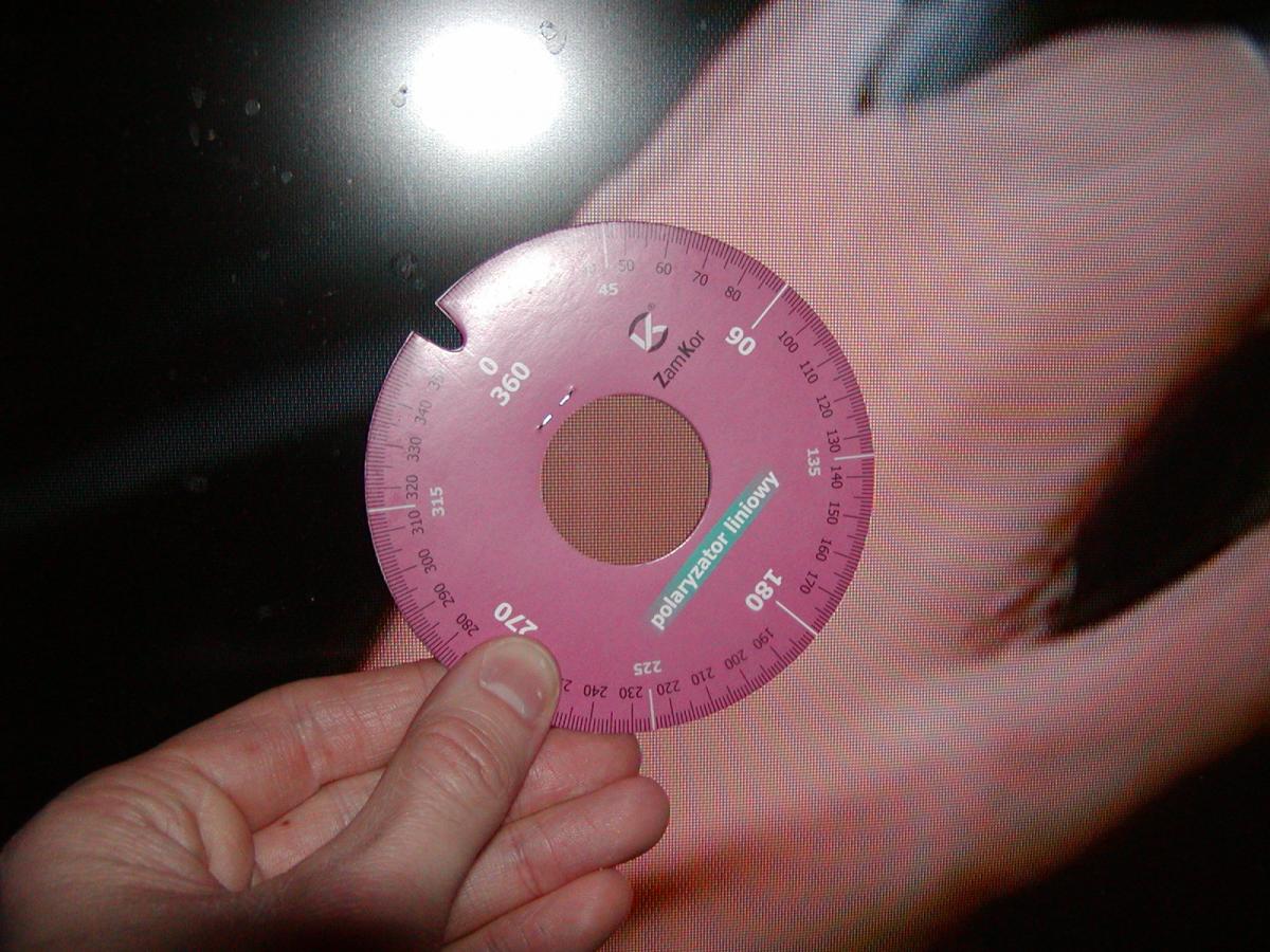 Rotate filter -45 degree, image from monitor disappeared, ~0% pass through:
