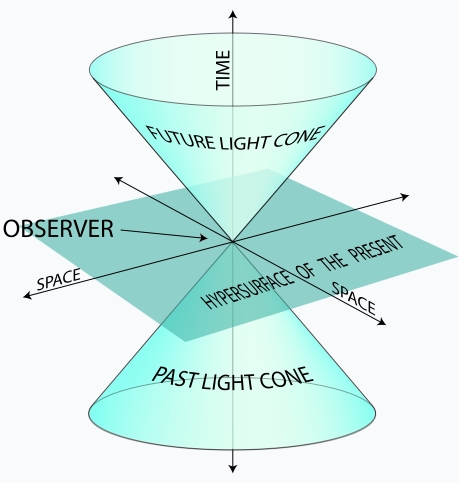 That cone is a way to make sense of something I don't quite think we are hardwired to make complete sense of.