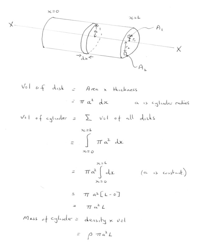 To show this difference I will work through the calculation of volume and MOI of a cylinder of radius a. This will also show why the length is apparently missing from the MOI.