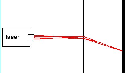 Does the laser shoot randomly? In different directions? So that the light ray one time goes through the left slit, the other time through the right slit, the next time bounces back because it misses the slits?