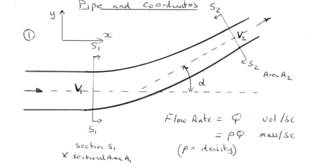 We consider a segment of fluid between sections S1-S1 and S2-S2, which are edit :where the pipe is tangent to the entry and exit directions respectively.