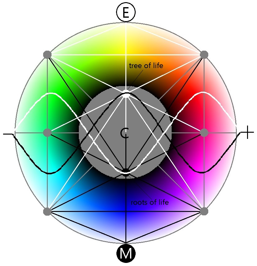 I have also been working on a diagram with other people over the years that has brought me to these theories. The points in the diagram is a white "Kundalini Tree of Life" with another black one flipped 180 and overlaid. I combined the two "kingdom" points at the center as the grey ball. Keep in mind this is more of a doodle done with paint shop HAHA