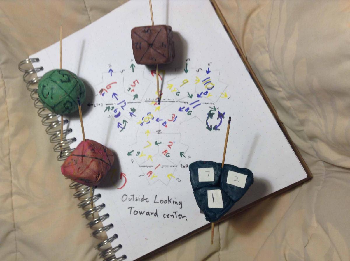 The pattern is the same. I took my clay and cut it in quarters and made 1/4-3/8 inch thic equilateral triangles and drew the shields and hexagonal planes on it, as in the last post.