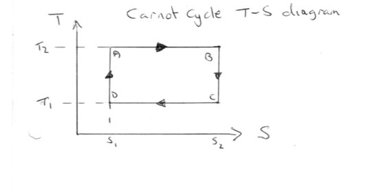 Unfortunately Van Ness does not provide a T-S indicator diagram for a Carnot cycle in which there are four reversible processes in series to form a cyclic overall process as per the first quote.