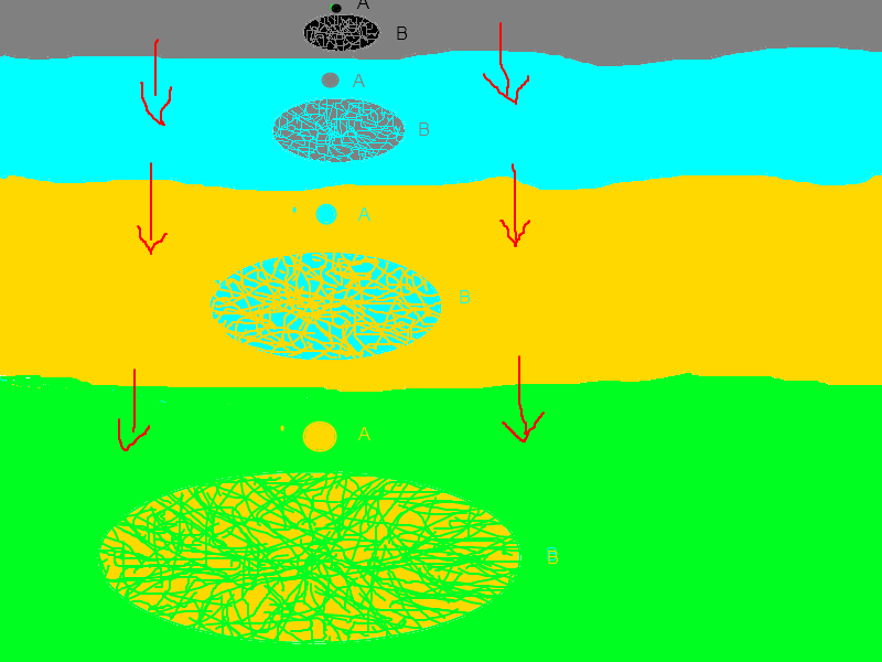 Like a soap bubble that forms, expands and pops, but as it pops sets the conditions for more soap bubbles to form.