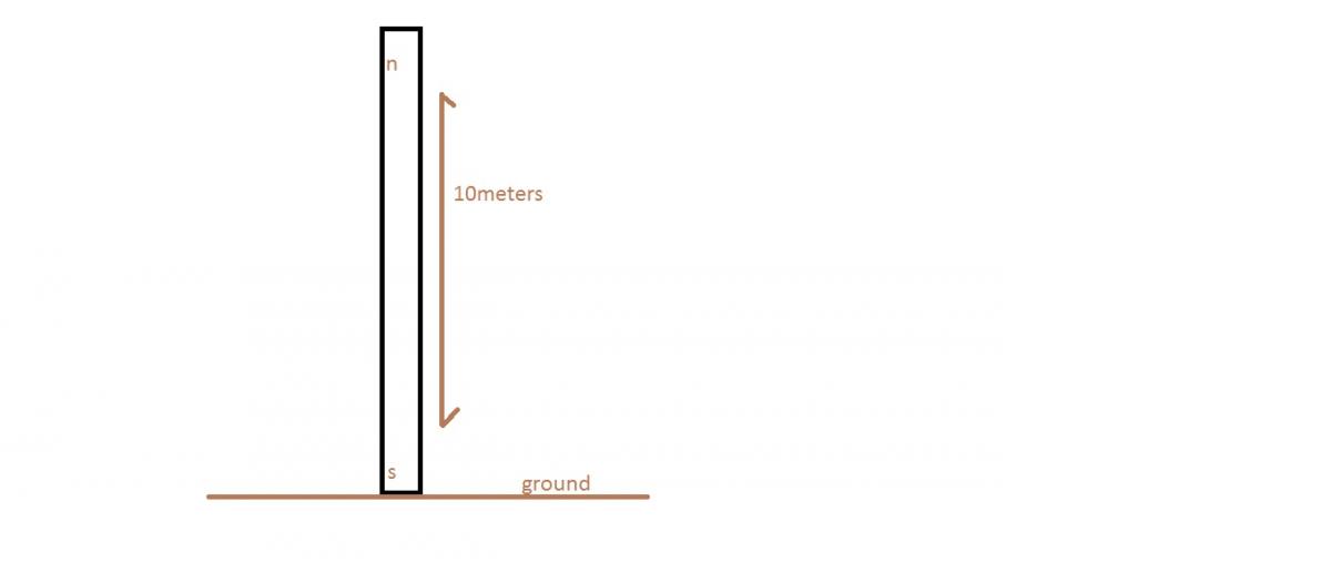 Also If we had a 10m magnet and stood it vertical south polarity on the ground, north in the air, would the north magnetic field push the magnet over towards the south magnetic pole of the planet