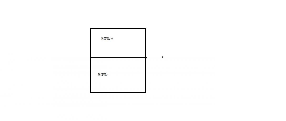 would the magnet be 50% positive polarity and 50 % negative polarity, where there is a central point of the the two meeting?