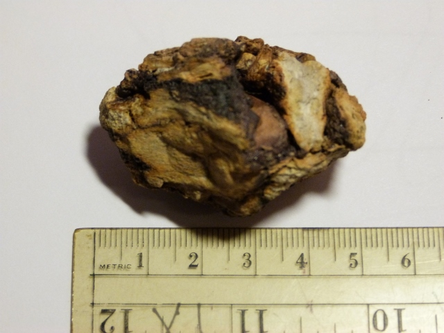 I literally stumbled upon this object in my yard (central Jersey) a few weeks ago. Initially I thought that it was wood, but after picking it up realized that it was some sort of rock. It is not magnetic, but it appears to consist of several different substances (rock/stone?). The parts would seem to have been fused together as if under extreme heat. I, as a novice would base this upon tiny air bubble holes on two or three of the materials in it that give that appearance to have been in a liquid state at some point. My hope is that someone on this forum can identify it and solve the mystery. Thanks to all who offer a response.