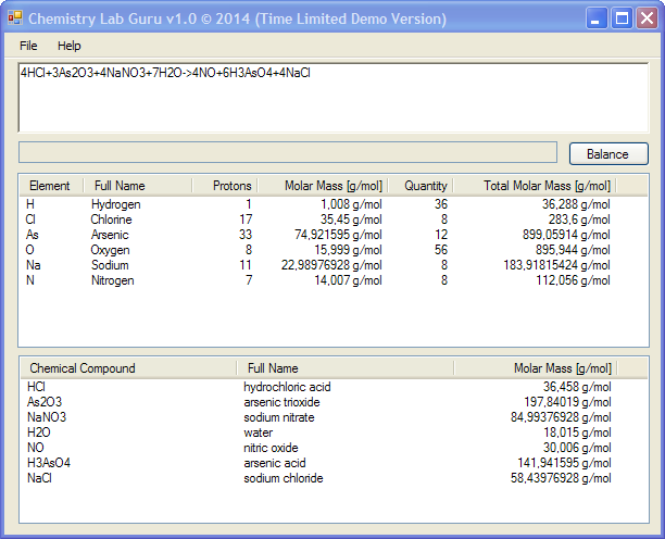 3As2O3 + 7H2O + 4NaNO3 + 4HCl --> 6H3AsO4 + 4NO + 4NaCl
