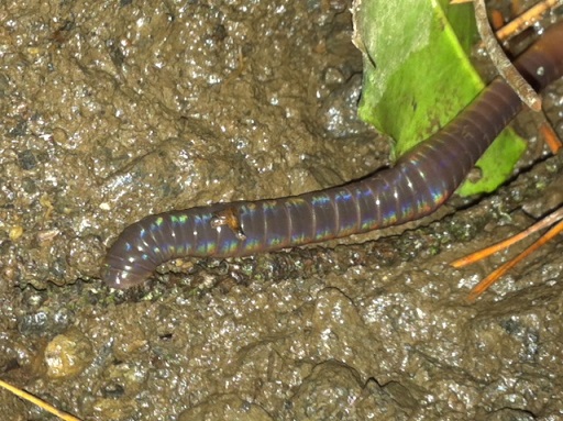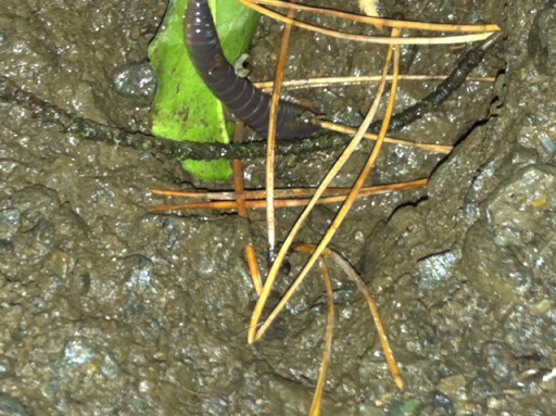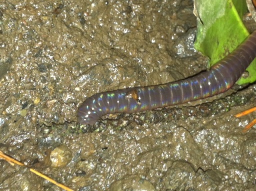 This is the worm who's burrow I had dug up previously, poor guy he's the only one out foraging tonight. Apparently there was a break-in and someone stole everything in his pantry. :( I feel really bad about that.