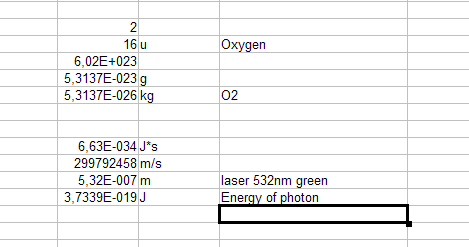 Let's say we have one Oxygen O2 molecule, it has mass 5.31*10^-26 kg