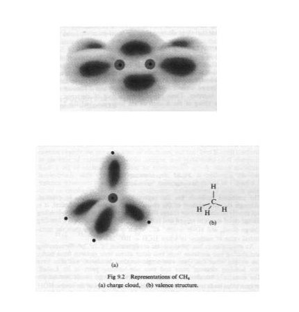 studiot: Yes, on the 2nd picture.. I can see the difference between two representations of methane; the charge cloud on left is 3-dimensional and "ball and stick" on right is 2-dimensional. (the 2-dimensional representation.. is it called valence structure.. or Lewis structure? reference link: Lewis Structure)