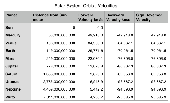 All I am saying here is that the velocity of the planets have a negative sign in front, ie they are moving away from you the observer, i.e. not towards you. This is further evidensed by the fact that to get a rocket into orbit it must by definition travel away from you i.e. negative velocity... Further evidense is that in order to move your rocket from a low orbit to a higher orbit, you need to add energy, once again increase its negative velocity, not decrease it.