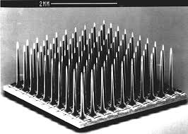 and and what material would be best for the array of pins to get the highest charge density or is the material irrelevant as long as it is a conductor?