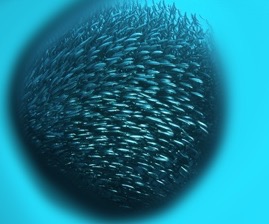 I call to mind Richard Finemans lectures on metronomes running in sympathy and fish in great underwater beautiful swarms . What controlled the fish on the outside to swim in perfect harmony, with all the other fish . " Some overarching controlling force ? ". NO , he says ! Each fish has a simple instinct to swim near but not too close to its neighbouring fish only . Add this effect happening across the whole swarm , and you get those amazing swarms . ITS NEIGHBOURING FISH IS WHAT INFLUENCES. THE SWARM .