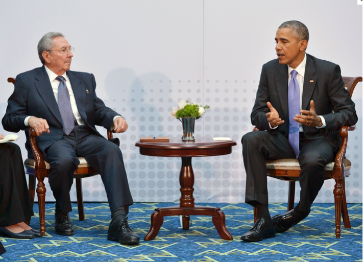I always thought that the tie is supposed to go all the way down and cover the belt buckle. I'm pretty sure Mr. Castro's tie is a bit too short and can't say about Obama's tie since he's not sitting straight up.