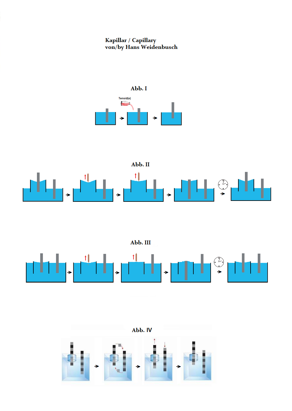 It appears that due to the additional uplift of a floater within a capillary tube an endlessly moving apparatus can be put into effect as an identical floater located alongside the capillary tube always remains on a lower level than the floater within the capillary tube (see fig. IV), as shown here in a real test: http://www.hwcv.net/auftriebs-kapillar-1/