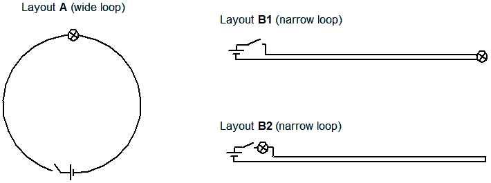 I don't know, but I have a gut feeling that these two cases would behave considerably different. For me, the A case is more complex and I don't even know if its large size makes any qualitative difference in comparison to small wire loops - not sure if the same math can be used (I suppose, yes). Anyway, i am only considering the B1 and B2 cases in the following text.