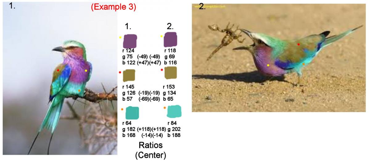 In these pictures I have matched the exact same color to both subjects, from the same species, two different times.