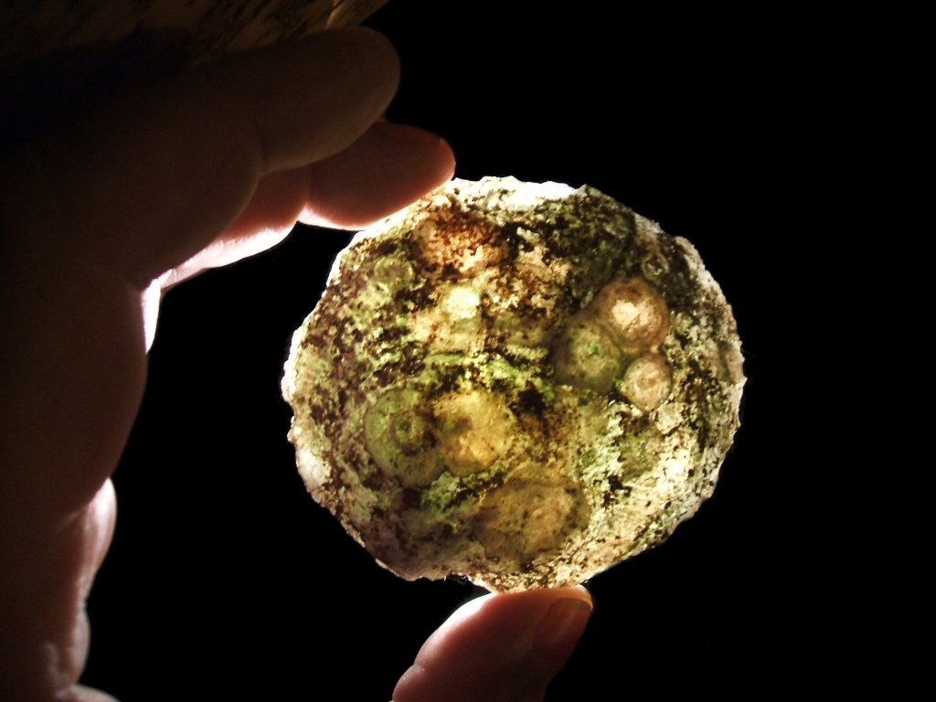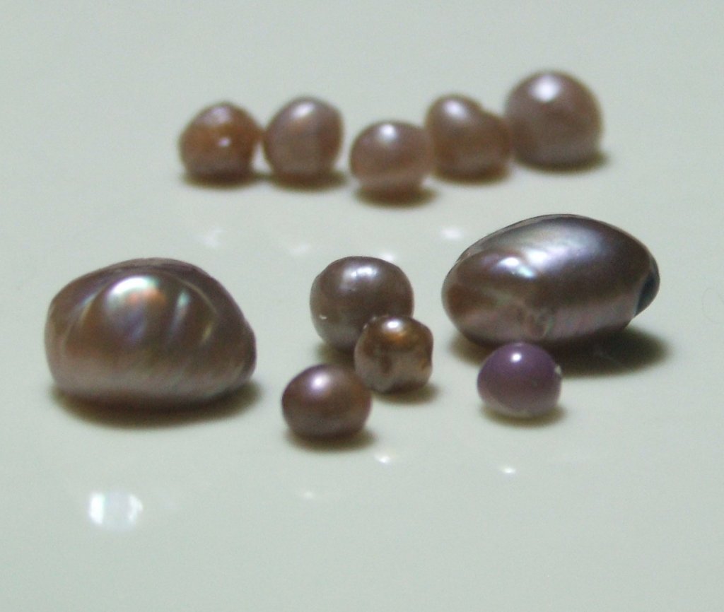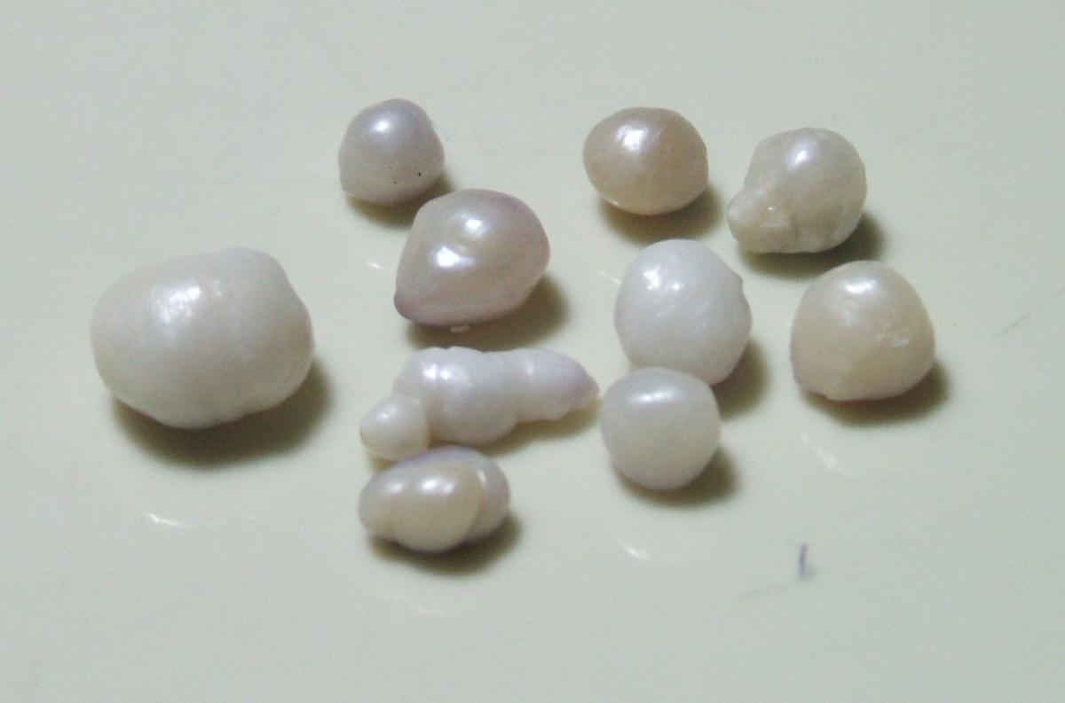 On the topic of environmental factors, I now submit images of natural pearls from Pododesmus macrochisma. These samples where taken from the same location as the mussels.