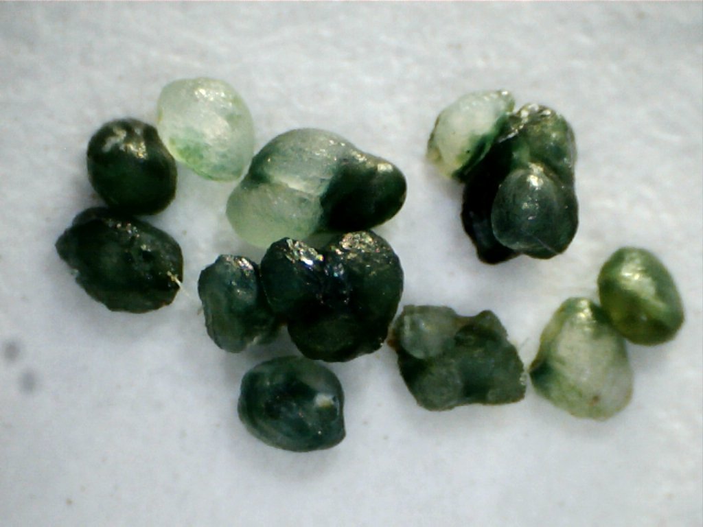 You'll note some of the pearls are almost transparent. On some of those pearls, there are expressions of protein presenting a bright green. You will also note in some, the pearls are occluded in calcite and present as white, even though it's apparent there is green underneath it. These are seasonal factors, later in the year (namely winter) the mollusk will uptake the calcite when the salinity is reduced. Like bones, the building of pearls or shells is not a one way street. It's balance of give and take even though it's generally more give. However, in my current work, I'm seeing trends in areas where acidification is causing shells to become weak and thin... but that's another topic for another discussion. For any degree of accuracy, measurements would have to be taken seasonally and applied as a subsection to each species. Again wholly impractical and needlessly burdensome when attempting to create a baseline.