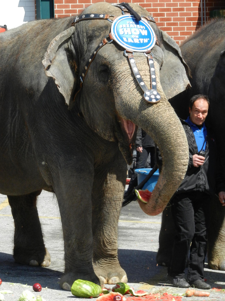 There are elephants that roam the Kalahari. When the circus came to town the handlers put on an exibition of the elephants being fed. One item on their menu that day was watermelons. Spectators got to watch the elephants stepping on the watermelons and then eating the pieces.
