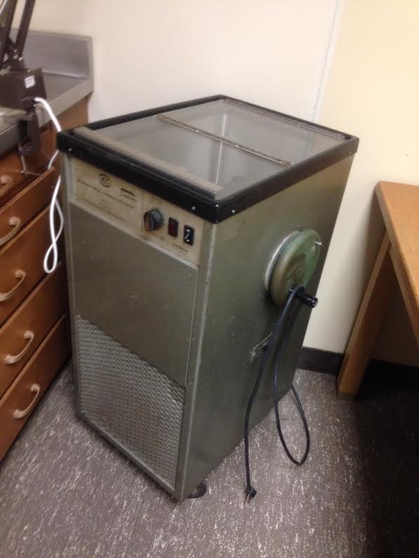 It is a harris cryostat made by International Equipment Co. Can't find squat online about this Model CT, just later harris models that aren't close to the style of this one. I'll check the compressor and see if it still works. Doubting that it will cool anymore, but I may be able to solve that problem with dry ice.