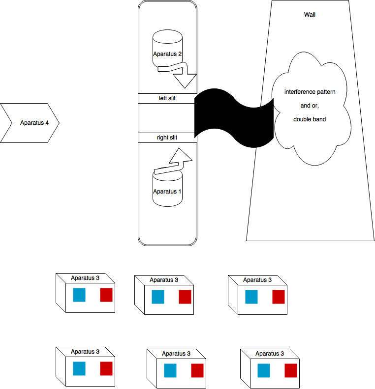 The configuration and setup is exactly the same as the double-slit experiment, except that aparatus 4 is customized to fit our needs of sending specific particles.