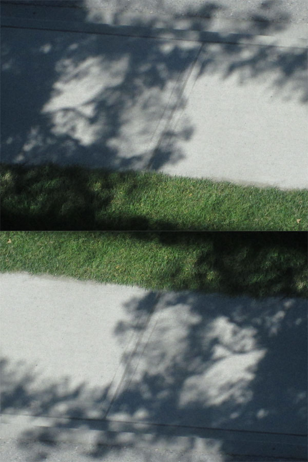 The first picture is of the lawn shadows. I was drawing cartoon monkey faces one day then it appeared. At first I thought it looked like a humanoid face so I took the picture then when I turned the picture upside down I noticed the humanoid chimpanzee type face.