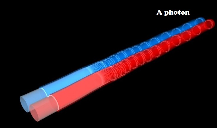 The easiest way to describe the photon, electron and proton in the model is that they are like a flexible coil, like the Slinky toy.