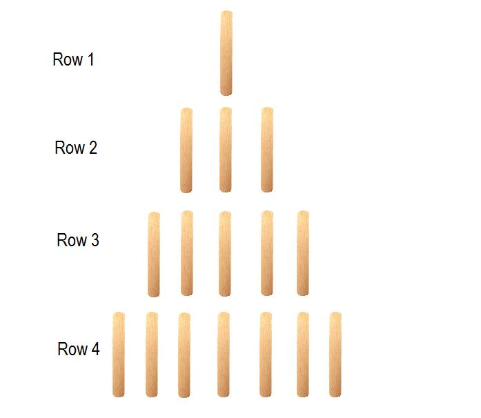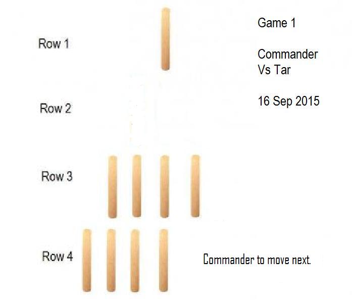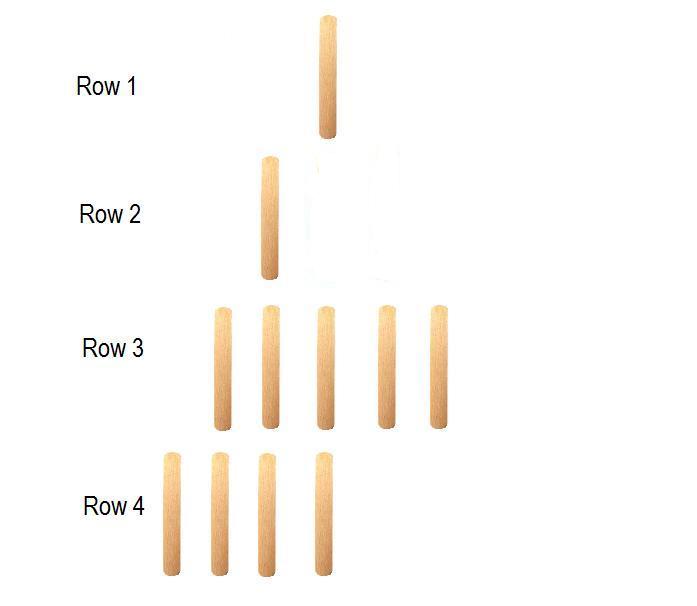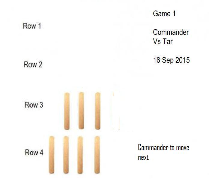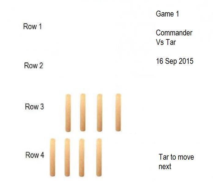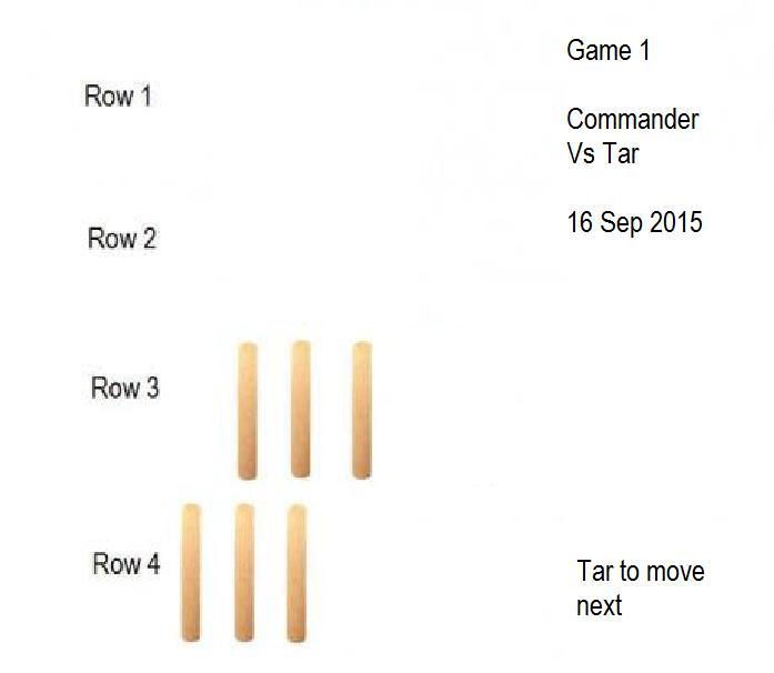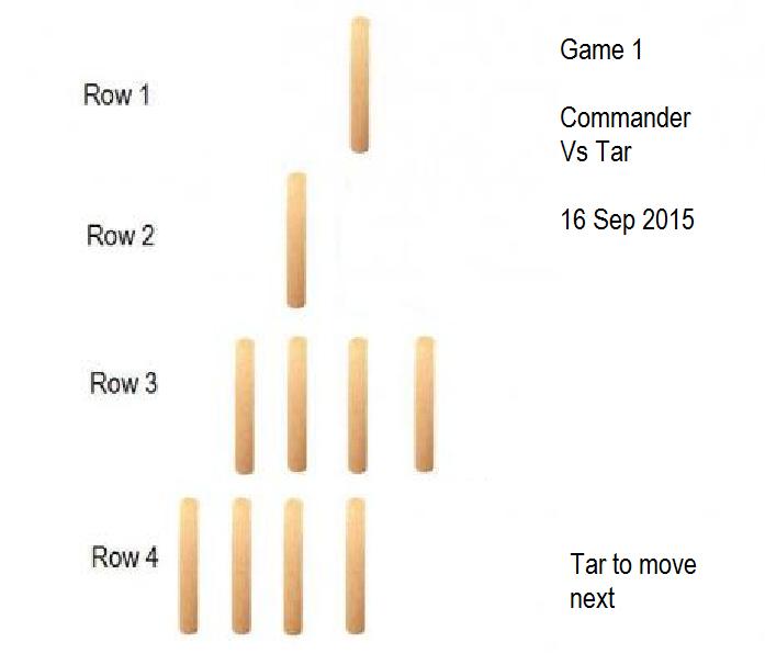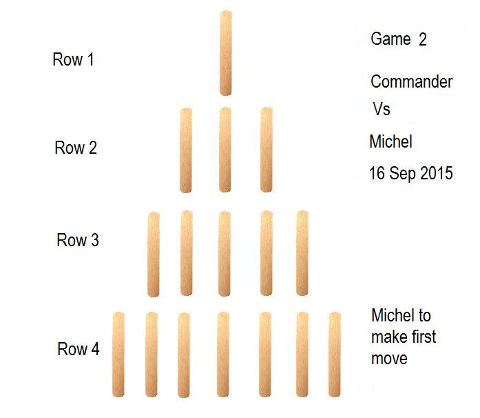 Then I will tell how many sticks I remove from which row and redraw the diagram for the left over sticks.