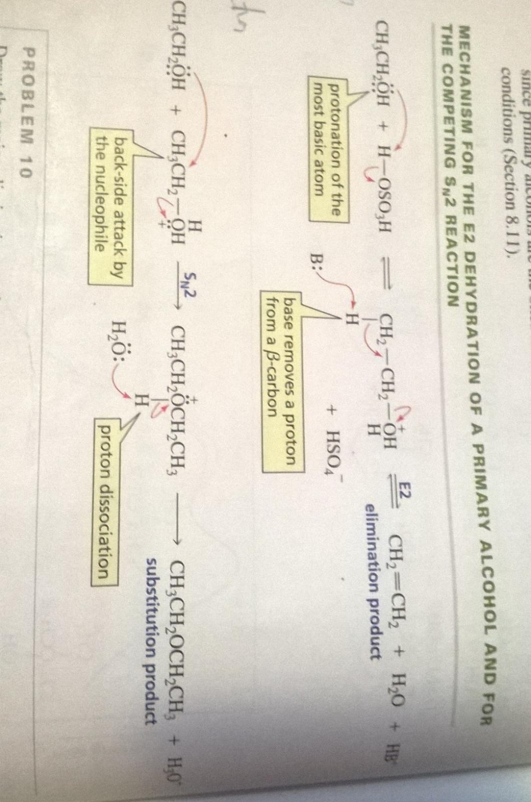 So E2 dehydration reaction of primary alcohols form an elimination product and a SN2 product which was an ether.