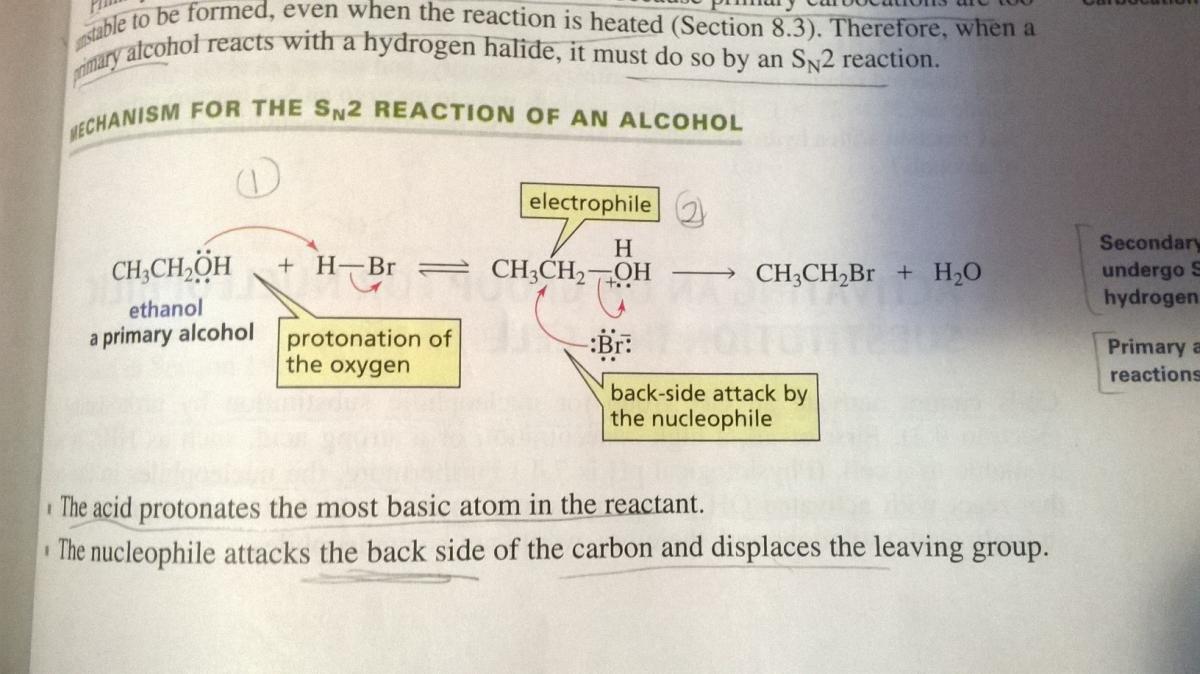 But before that I had read on the same book a few sections before that the SN2 reaction for a primary alcohol formed a substitution product, which was an alkyl halide!