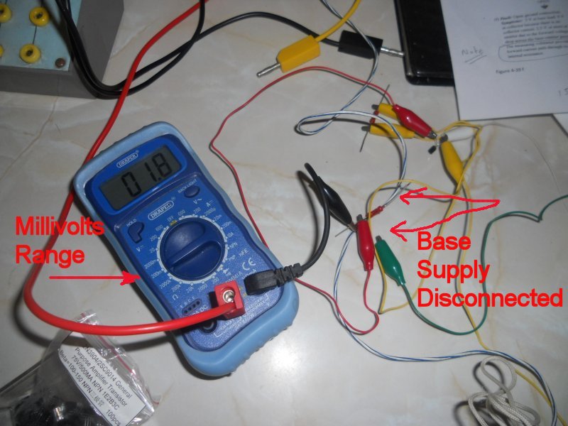 So any current flowing will be the collector - emitter leakage with abse open circuit Iceo