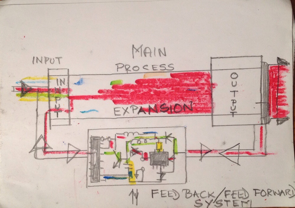 A proportion of the output signal is fed back through a feedback system , to the input allowing major amplification of Red , universe at large , and ingredients for universe construction from the smallest particles fields upwards and otherwise . This side return system survives in bits in the universe to be discovered . The pre 1 sec to the minus 43 , remains un obtainable , BUT fragments of the feedback systems , remain yet to be discovered ? Just maybe ? ( fragments of yellow ,blue , green , )