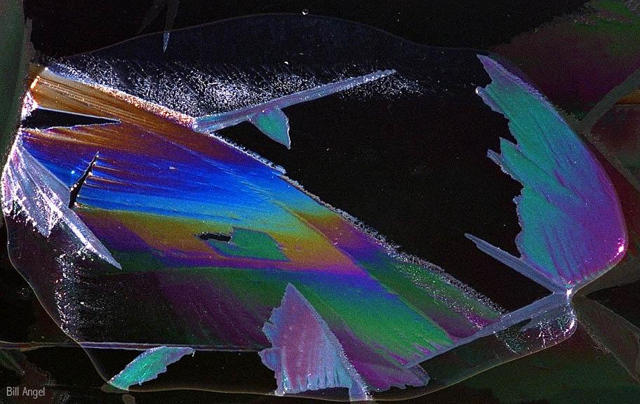 The image below was created by photographing the ice on the surface of a pond with the camera's lens equipped with a polarizing filter.