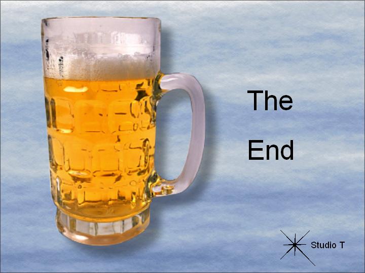 I like to end a talk with this slide, and then declare the bar open, though for some audiences I might substitute a cup of tea.