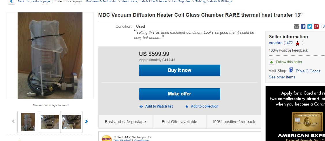 I write to you today to ask you all a question, I am attempting to assemble my own homemade Fusion reactor, just finalizing everything I need and then I will start the equipment assembly process. My question for you today involves the vacuum chamber. I have located a good looking chamber online and need to know if it looks and is fine to use for this project. Obviously it will be see through so I am able to see the process. Go easy on me, this is my first time and acquisition of parts may take sometime, any advice is appreciated. This is just one Vacuum chamber I have located but the price is quite steep, if I can find a cheaper one that is well suited I may choose it.