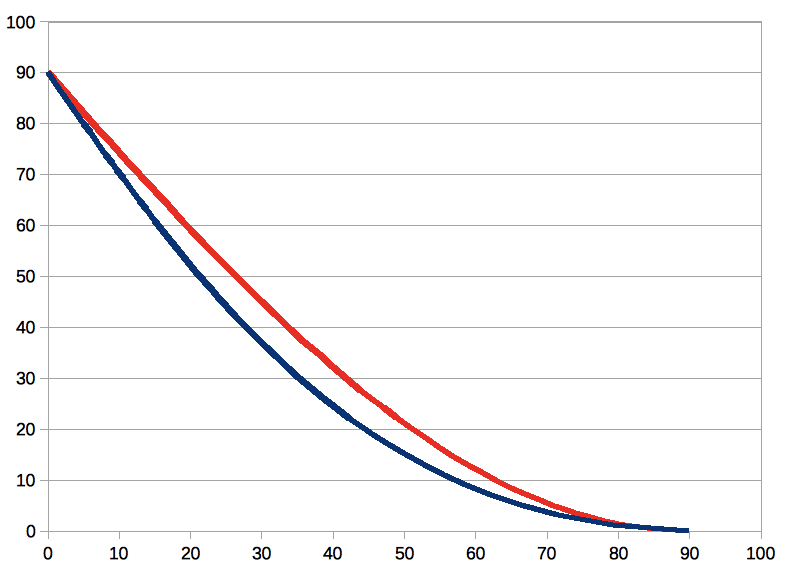 I must have been really bored ... the attached graph shows the value of the angle from the animation as a function of E (blue line). The red line is a sine curve over the same range for comparison (I thought the result was simply going to be a sine, at first).