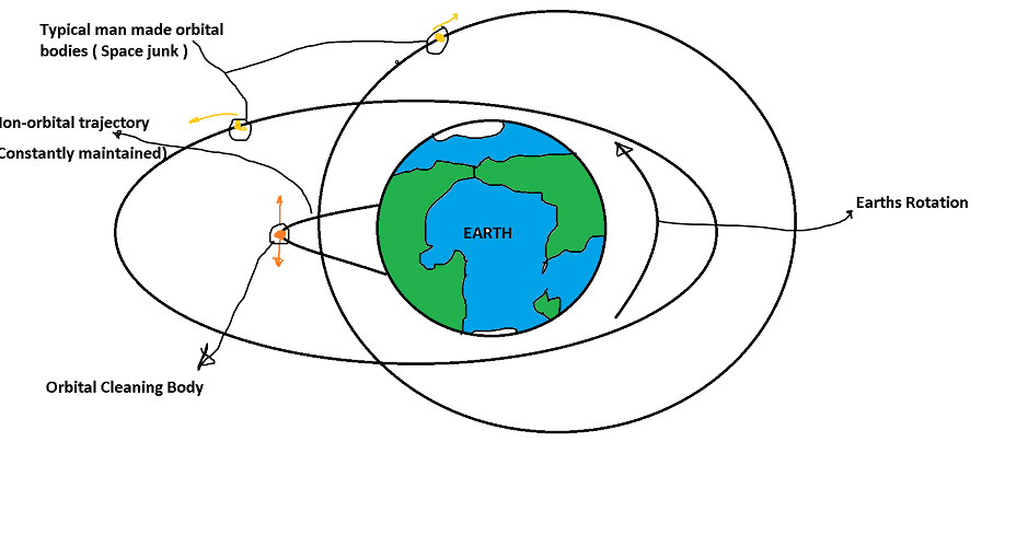 Please note that the image shows that the earth is rotating weirdly, I only wanted to show man made orbiting bodies in respect to the rotation of the earth along with the object that is not in a full earth orbit, again this is not an accurate interpretation of the earth rotation at all, it is merely a over simplified and obscured understanding looking only at the orbiting and sub orbiting bodies around the earth.