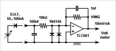 A circuit to measure 10 to 100nA leakage is easy. It takes a banal BiCmos op amp at room temperature (not in the oven) and a handful of components. Only cabling matters.