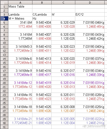 Strange you skip between that many threads making comments, that it's like your in some sort of competition to as who makes the most number of posts, so how can I possibly expect you to follow this thread and keep on the ball with it, so; if you look at the jpeg above with "Mass Table" in it's top left corner, then look to the right hand column ending in Kg, these are the particle masses, then look down the right hand column ending in Kg until you get to the particle with a mass of 1.246e-27Kg, then follow the simple steps with that particle mass with the heavier one below it as described above, I hope this helps, really I do :)