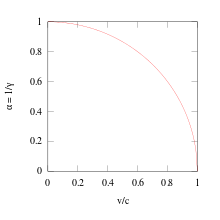 The graph on the right right shows the inverse of the Lorentz factor with respect to the ratio of v/c. It's interesting to note that some would say that the graph on the right shows that the change in speed relative to an outside observer is related to a dimensional shift or rotation in spacetime.