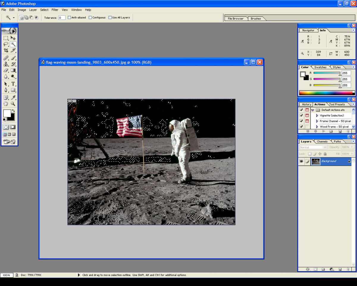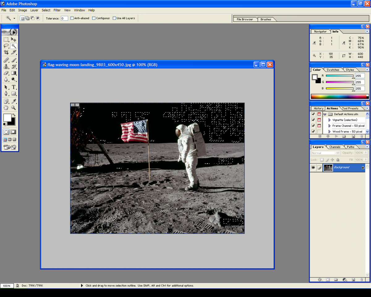 I loaded photo "The Waving Flag" from your link, to Photoshop,